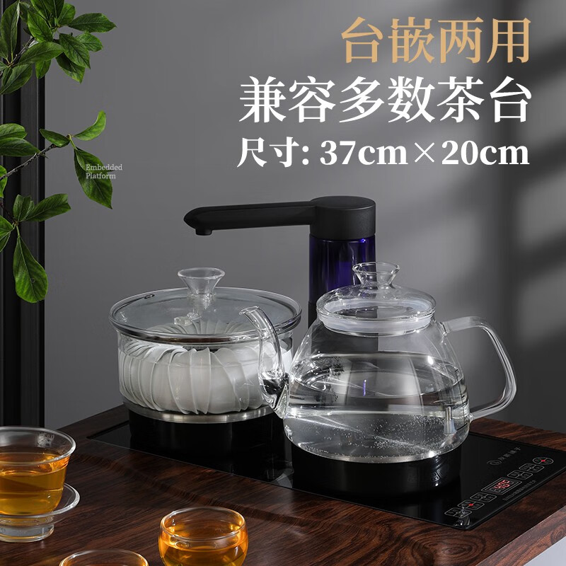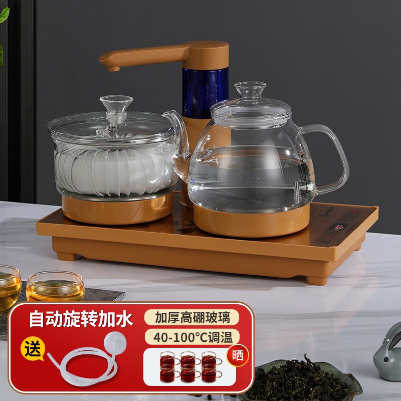 FUNORK 全自动上水电热烧水壶煮泡茶专用茶台一体机保温抽水茶具套装家用茶桌茶几嵌入式 自动玻璃-金色(37x20cm)价格:239.00元!