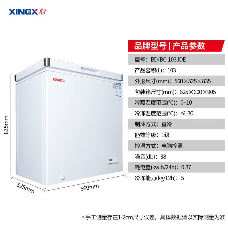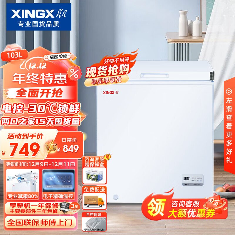 星星(XINGX) 103升 低霜家用囤货小型冰柜 电脑温控冷藏冷冻转换冷柜 单温单箱母婴母乳冰箱 BD/BC-103JDE价格:799.00元!