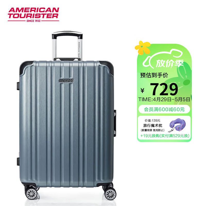 美旅箱包铝框拉杆箱时尚男女行李箱超轻万向轮旅行箱26英寸TV3拉丝灰绿色价格:929.00元!