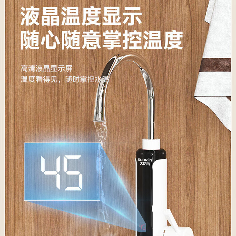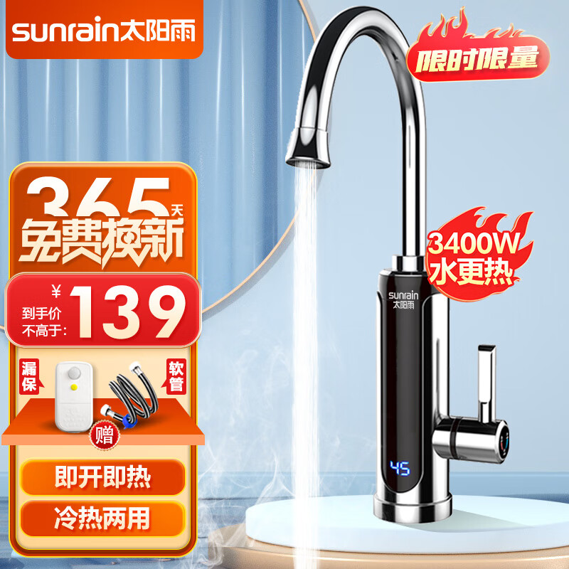 太阳雨(sunrain)电热水龙头 快速加热厨房冷热两用 即热式电热水器下进水小厨宝 YR-B10 电镀银漏保款价格:139.00元!