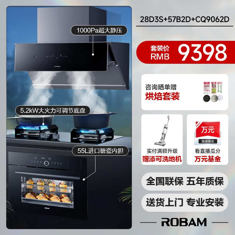 老板(Robam)28D3S+57B2DT+CQ9062D烟灶蒸烤套装厨房多件套一体机嵌入式23m3/min抽油烟机(天然气) 价格:9398.00元!
