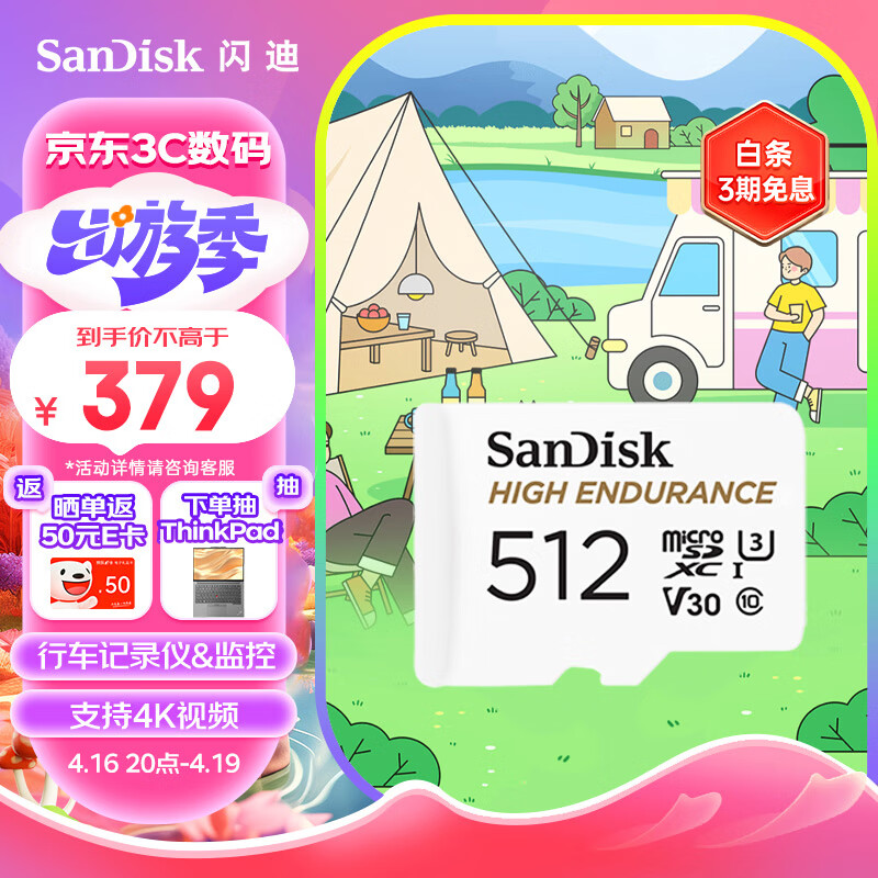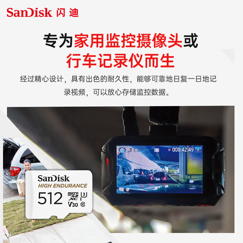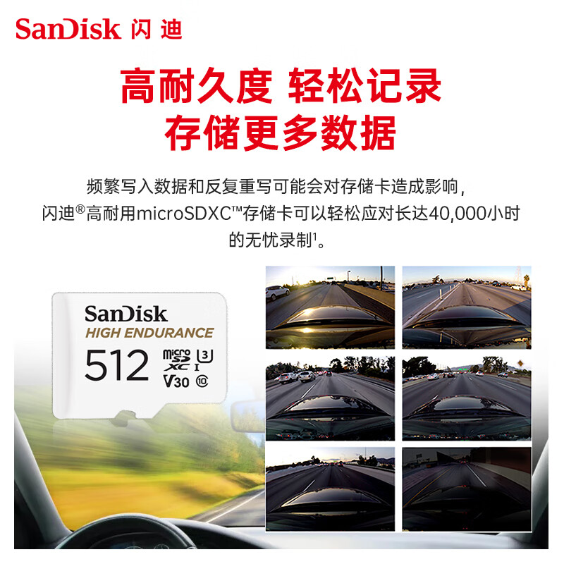 闪迪(SanDisk)512GB TF(MicroSD)存储卡 行车记录仪&安防监控专用内存卡读速100MB/S价格:379.00元!