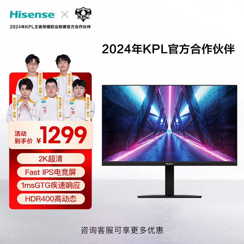 海信27英寸2K FastIPS 1ms响应 HDR400 10bit内置音响 旋转升降俯仰 电脑显示器显示屏27G5F-PRO价格:1299.00元!
