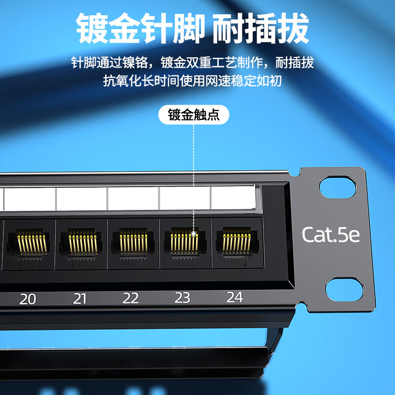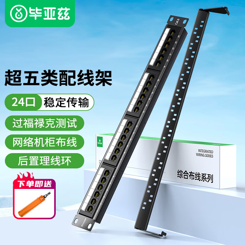 毕亚兹 超五类24口配线架 非屏蔽CAT5E网线配线架 镀金1U机架式机柜工程网络跳线理线槽 TT82价格:129.00元!