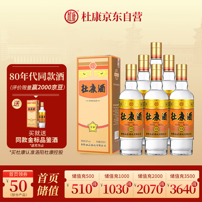 杜康金标酒浓香型白酒52度500ml*6瓶整箱【自饮长辈送礼纯粮口粮】价格:388.00元!