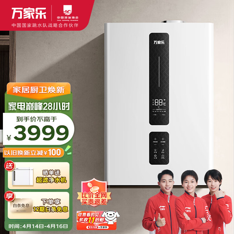 万家乐小体积燃气壁挂炉天然气 低噪变频恒温WiFi板换式地暖供暖采暖热水两用燃气热水器L1PB26-24R1价格:3999.00元!