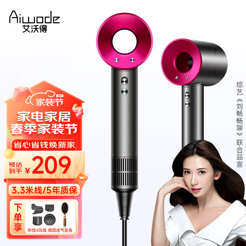 艾沃得(Ai wo de)吹风机家用新一代电吹风筒大功率高速吹风机1600W负离子大风力11万转速干低噪音便携无叶 玫红色3.3米线 【负离子发廊家用】四风嘴 普通装价格:198.55元!