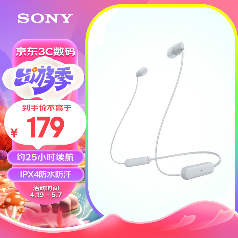 索尼(SONY)WI-C100 无线立体声 颈挂式 蓝牙耳机 IPX4防水防汗 约25小时长久续航 (WI-C200升级款) 白色价格:169.00元!