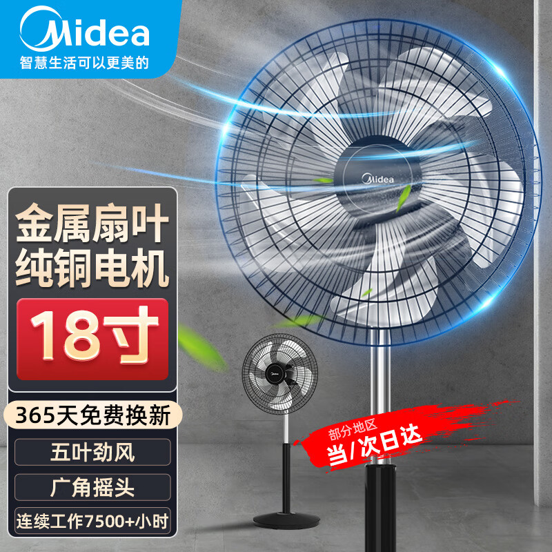 美的工业电风扇立式大风扇强力办公室风扇落地超大风大功率工厂金属扇叶车间商用牛角扇 FS45-23A价格:299.00元!