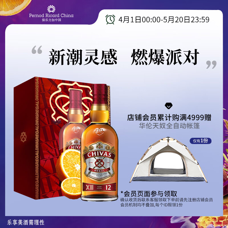 芝华士(Chivas Regal)12年 苏格兰 调和型 威士忌1L 礼盒(内含骰子)价格:239.00元!