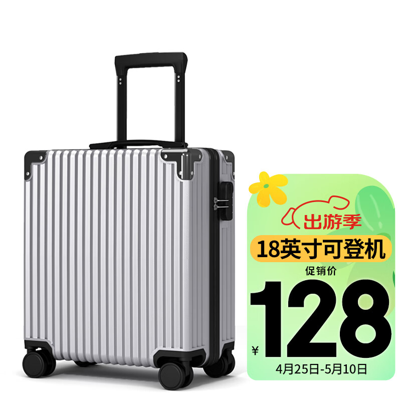 ATHT行李箱男小型旅行箱飞机商务登机箱18英寸密码拉杆箱女皮箱子银色价格:128.00元!