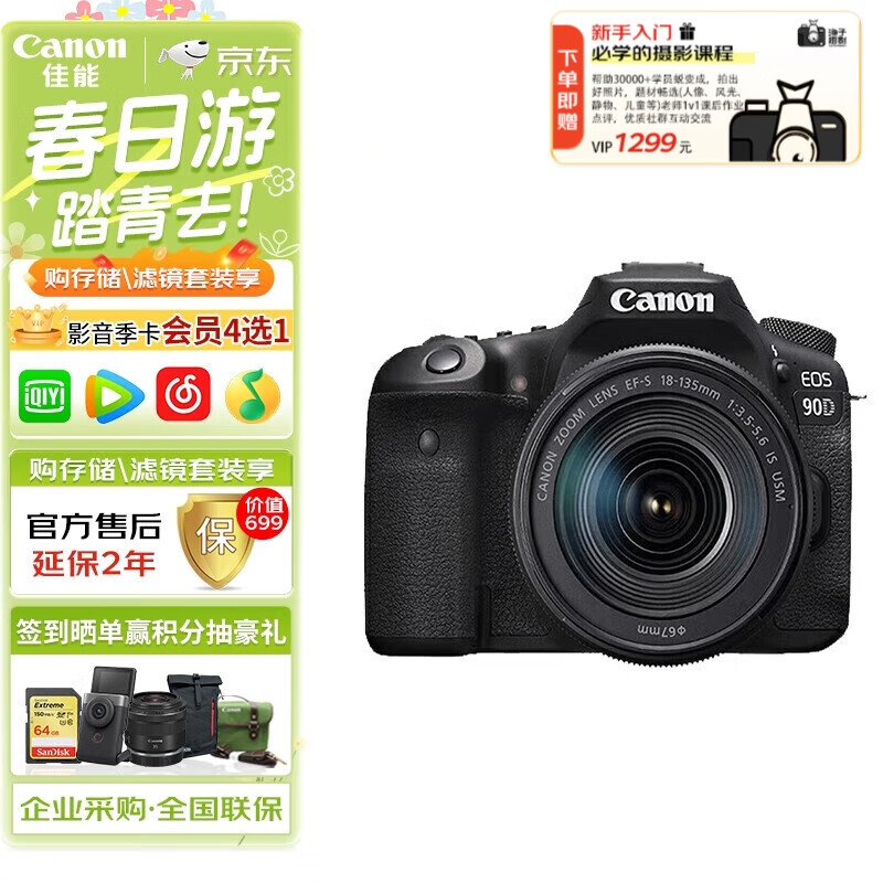 佳能(Canon)EOS 90D 18-135 USM套机 扫街拍摄套装价格:11599.00元!
