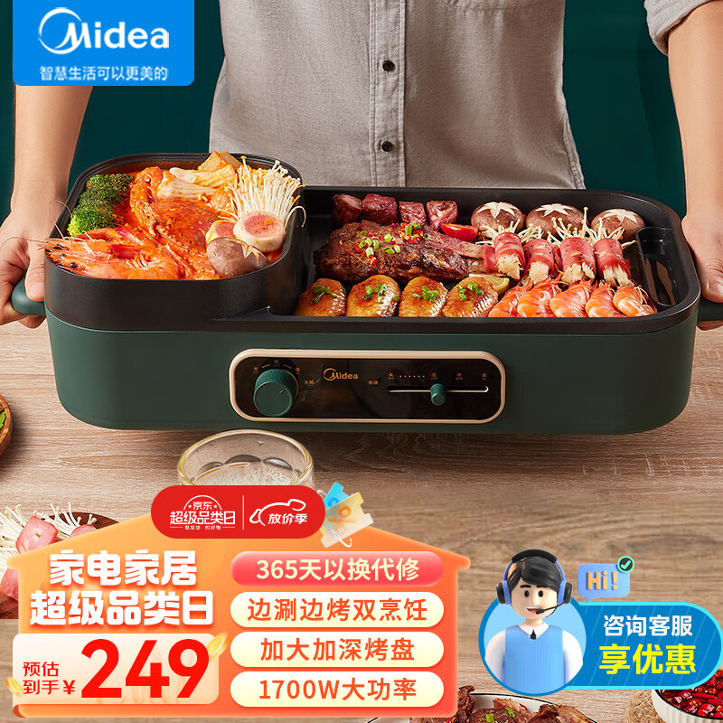美的(Midea)电烤炉 烧烤机 多功能电火锅 家用无烟烤肉机烤涮一体锅SK5025Q2-402G价格:249.00元!