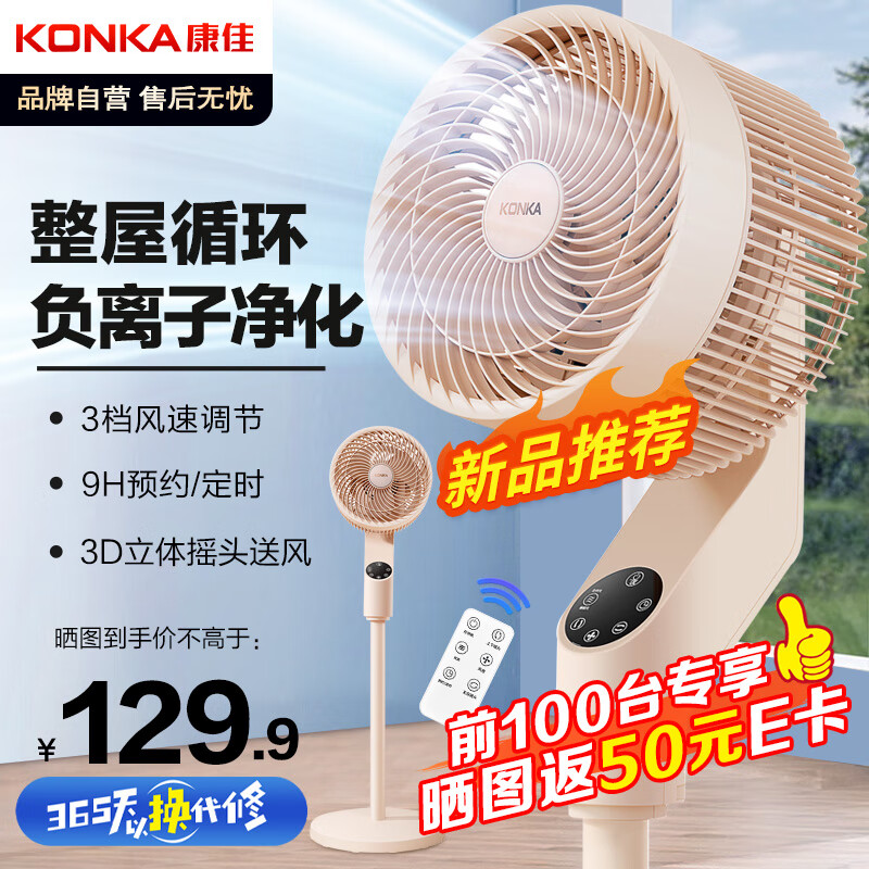 康佳(KONKA)空气循环扇电风扇家用风扇八字摇头电扇轻音小风扇立式大风量落地扇遥控节能换气扇KXHS-1907E-P价格:199.90元!