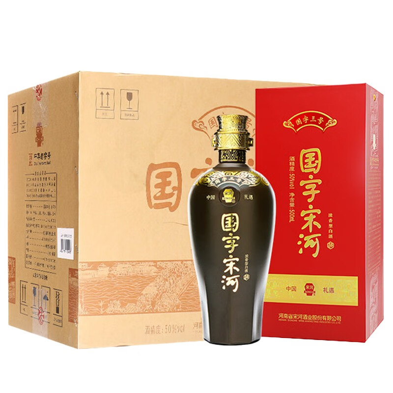 宋河粮液 国字三号 浓香型白酒 50度 500ml*6瓶 礼盒整箱装 送礼价格:754.00元!