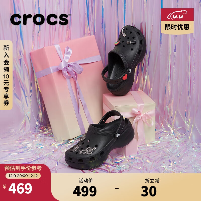 crocs卡骆驰洞洞鞋经典云朵沙滩鞋|206750 黑色-001 36/37(230mm)价格:499.00元!