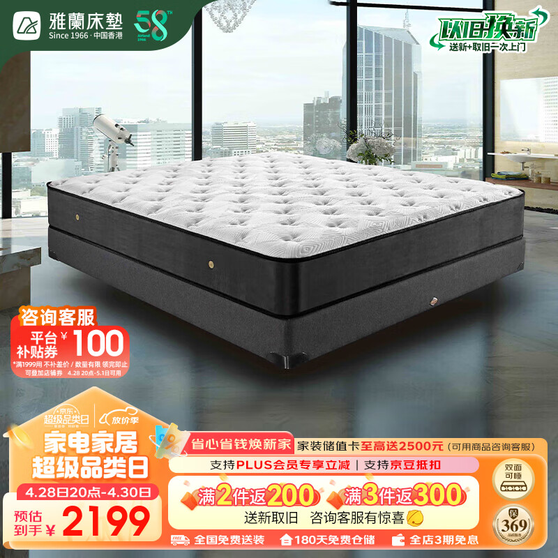 雅兰50周年纪念款 亲肤透气整网弹簧椰棕床垫 蘭朋友加硬版 1.8*2米价格:2699.00元!