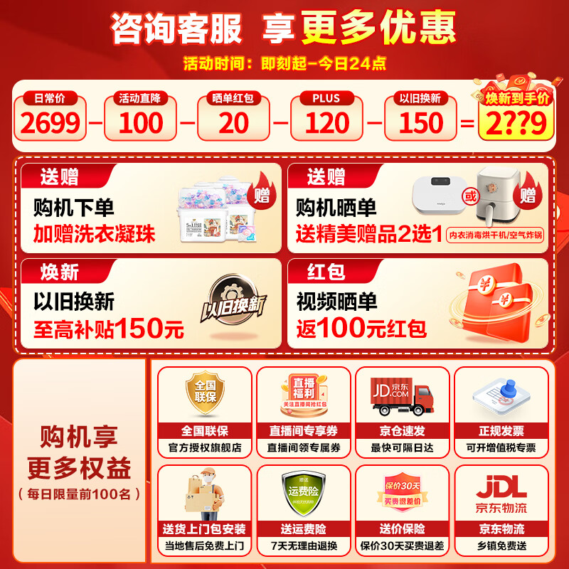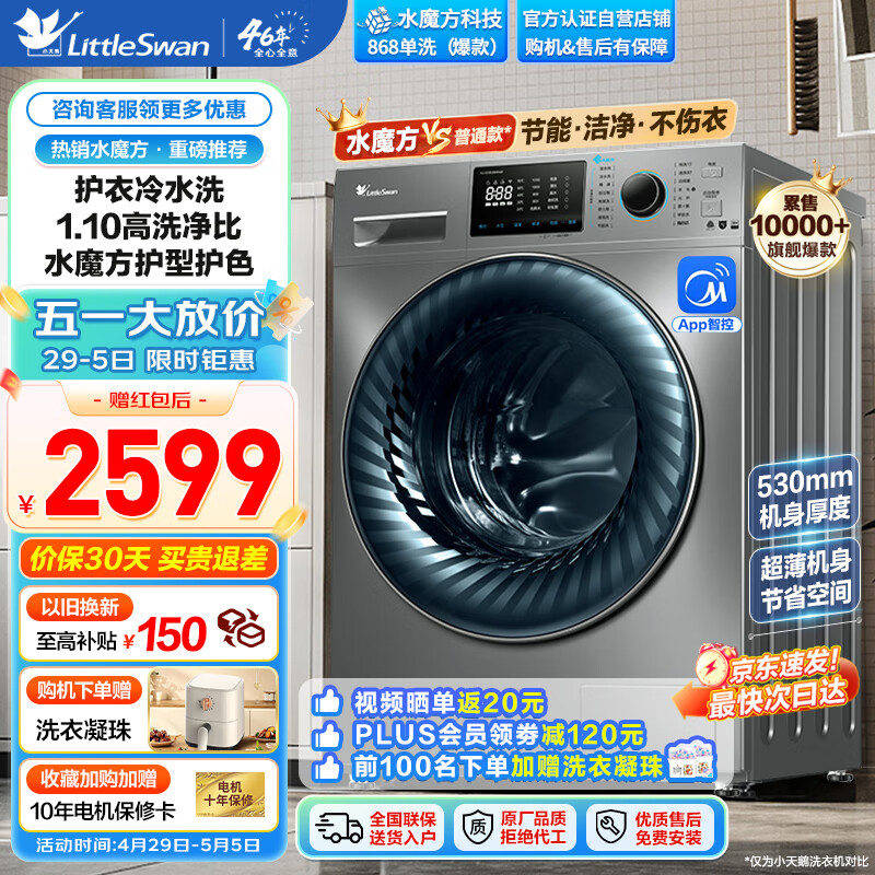 小天鹅(LittleSwan)水魔方滚筒洗衣机10公斤全自动家用变频 防缠绕 冷水洗护色护形TG100V868WMADY价格:2549.00元!