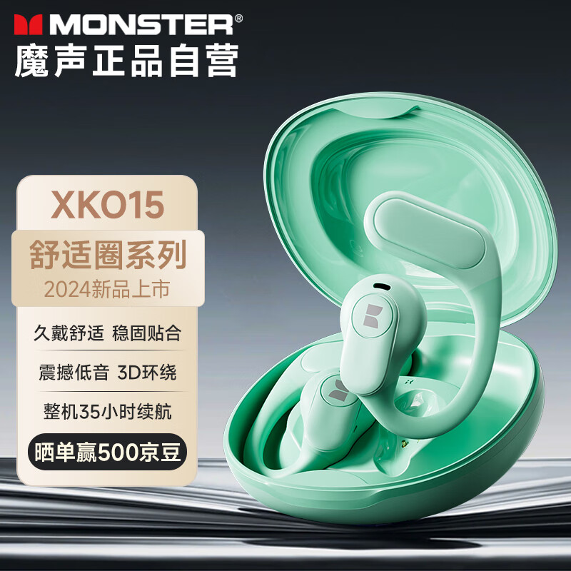 魔声(MONSTER)无线蓝牙耳机 挂耳式骨传导概念开放式不入耳夹耳 运动跑步降噪高音质礼物适用苹果华为 XKO15绿色价格:129.00元!