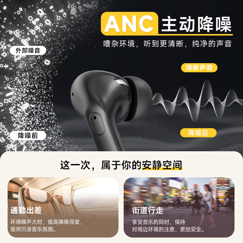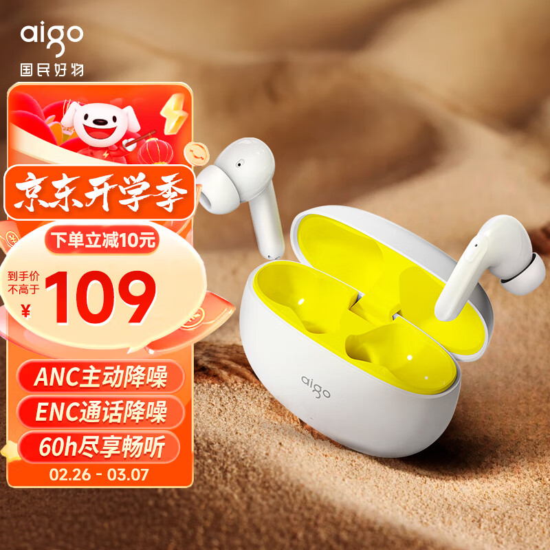 爱国者(aigo)蓝牙耳机真无线ANC主动降噪 入耳式游戏低延迟 通话降噪长续航蓝牙5.3适配苹果小米华为安卓TA85白价格:99.00元!