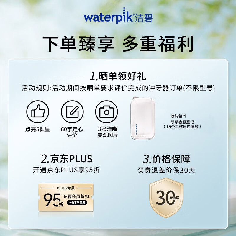 洁碧(Waterpik)冲牙器无线台式电动洗牙器水牙线洁牙器家用立式预防牙结石小魔盒 GT17-26 礼物价格:1468.00元!