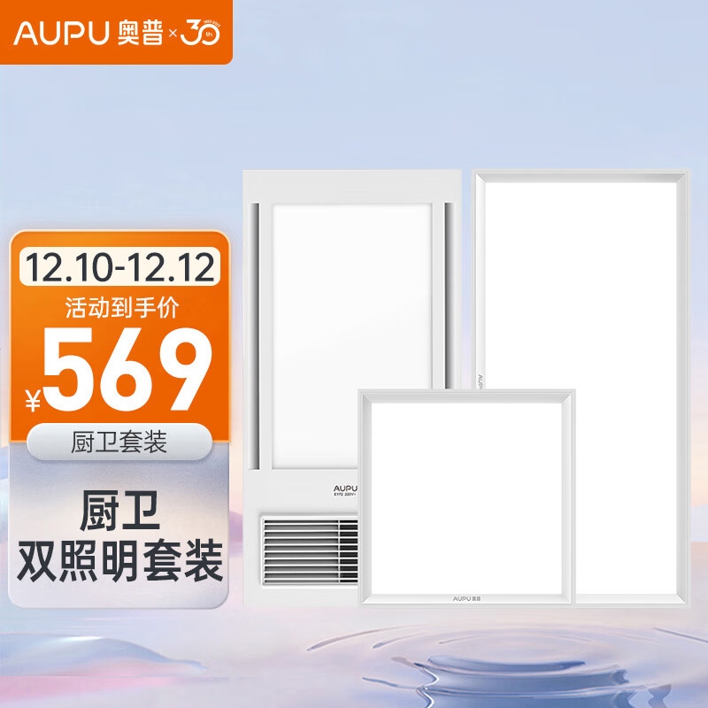 奥普(AUPU)浴霸E172纤薄强弱风暖浴霸 +长灯+方灯双照明套装(附件形式)价格:799.00元!