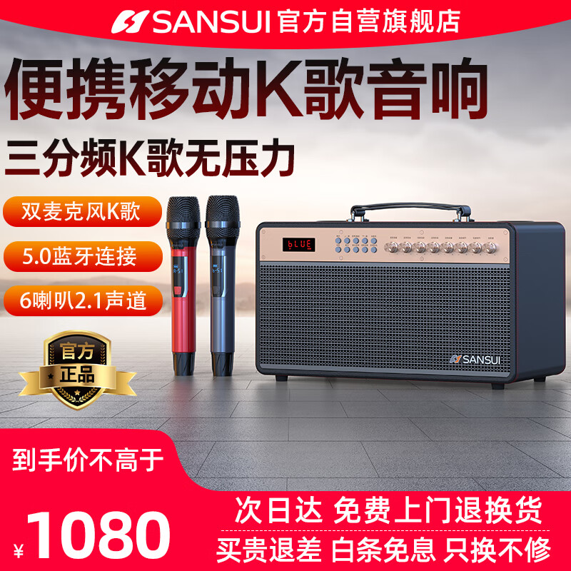 山水E6无线蓝牙音箱低音炮户外便携小型移动K歌露营音响一体机声卡直播广场舞音响音乐播放器乐器音箱价格:1080.00元!