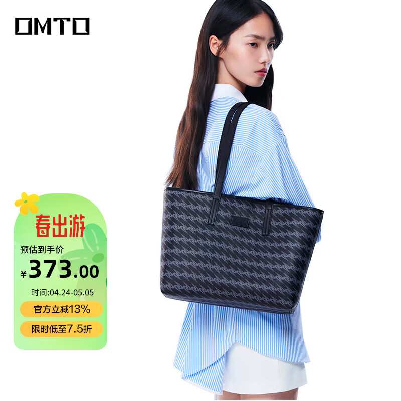 OMTO托特包时尚包包女包大容量通勤单肩包生日礼物送母亲松露黑大号价格:480.00元!
