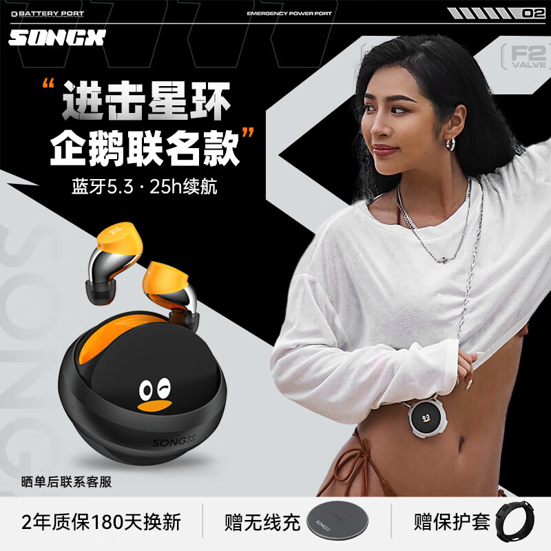 SonGX 蓝牙耳机无线ENC主动降噪运动跑步游戏音乐耳机入耳式蓝牙5.2腾讯怪企鹅联名适用苹果华为小米价格:329.00元!