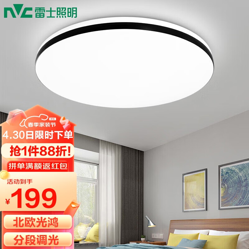 雷士(NVC)led吸顶灯北欧现代简约客厅卧室书房餐厅超薄灯饰灯具分段调光价格:199.00元!