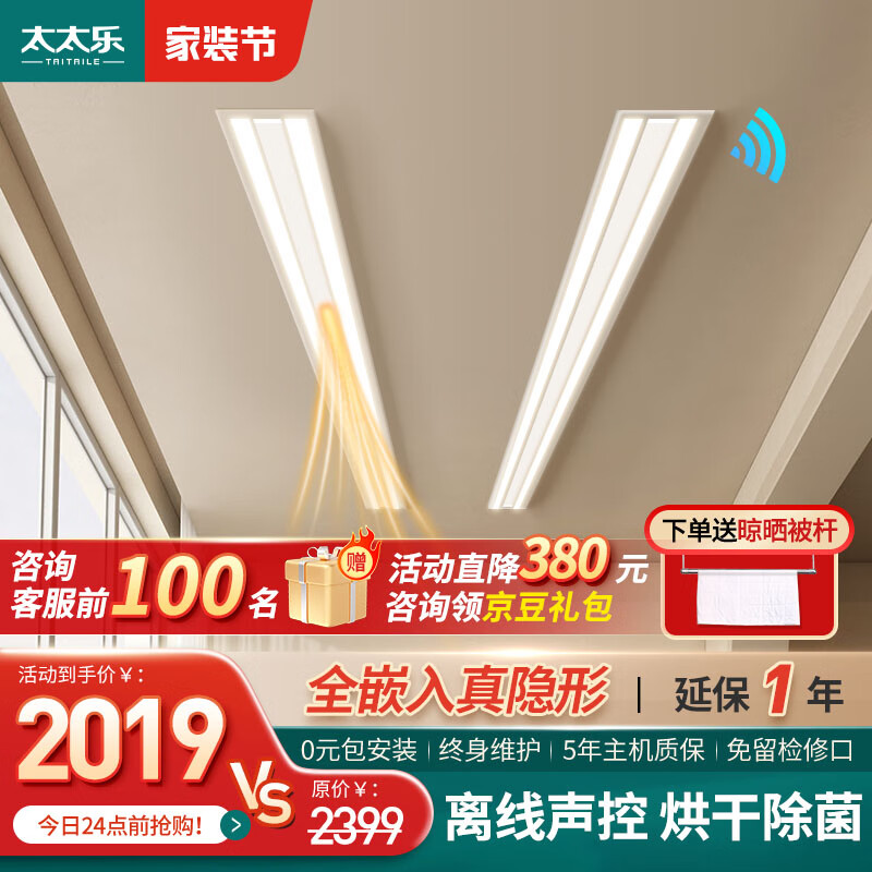 太太乐(TAITAILE)智能晾衣架隐形嵌入式晾衣杆电动晾衣机照明烘干杀菌全自动晾衣杆价格:2399.00元!