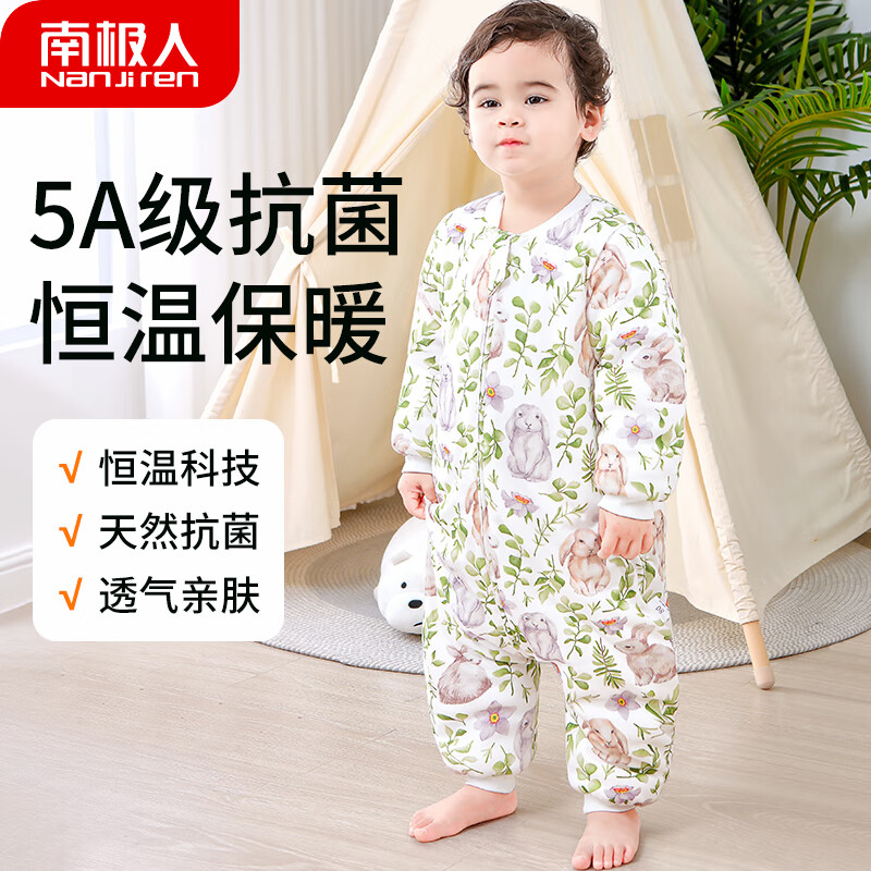 南极人(Nanjiren)婴儿恒温分腿睡袋春秋冬儿童防踢被子宝宝家居服纯棉连体睡衣80码价格:65.90元!