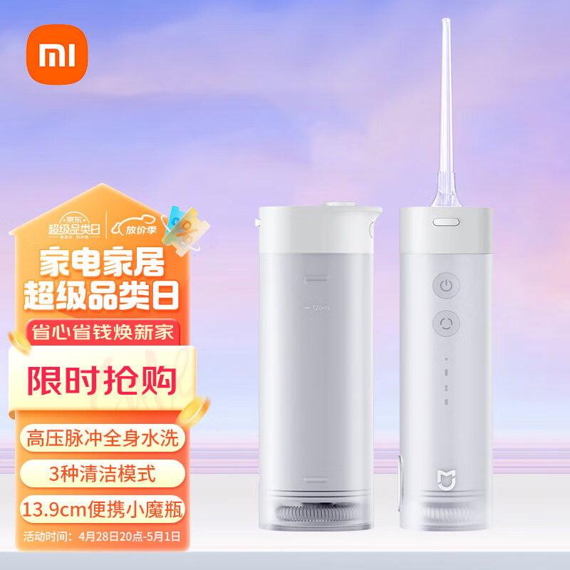 米家 小米便携式冲牙器洗牙器清洁口腔 高压脉冲全身水洗 60天长续航 象牙白 礼物推荐价格:199.00元!