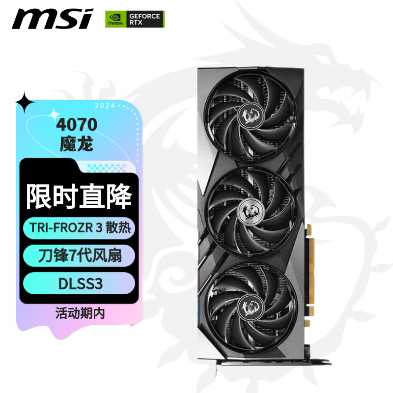 微星(MSI)魔龙 GeForce RTX 4070 GAMING X SLIM 12G 电竞游戏设计智能学习电脑独立显卡价格:5099.00元!