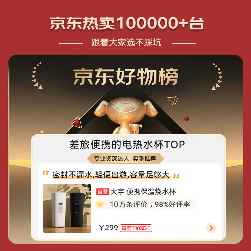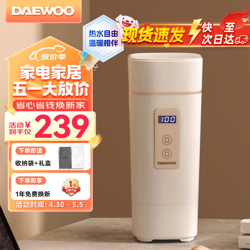 大宇(DAEWOO)便携式烧水壶 加热电热水杯家用旅行迷你小型电热水壶 婴儿调奶烧水杯保温杯送礼D2升级款价格:239.00元!
