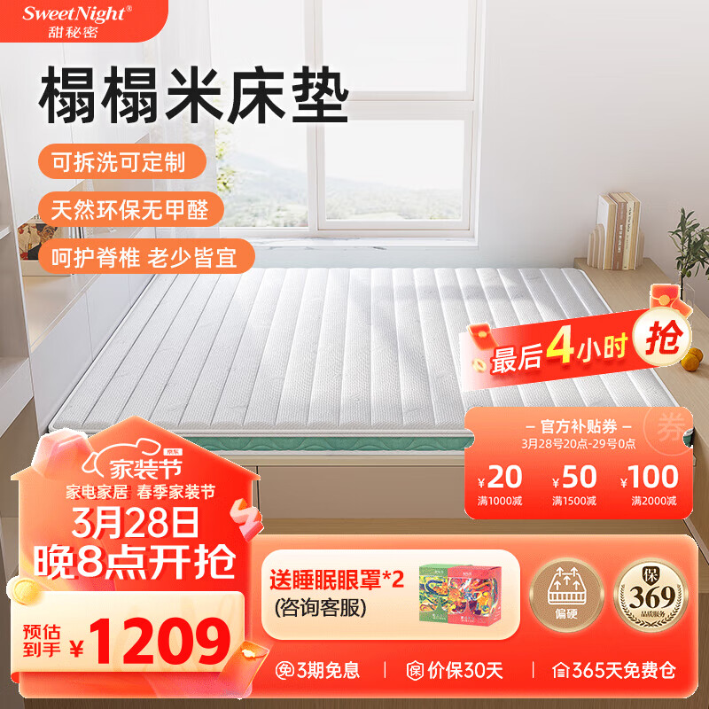 Sweetnight榻榻米床垫天然椰棕8cm床垫子 可定制拆洗 甜秘密丹左B款 1.8x2米价格:1209.00元!