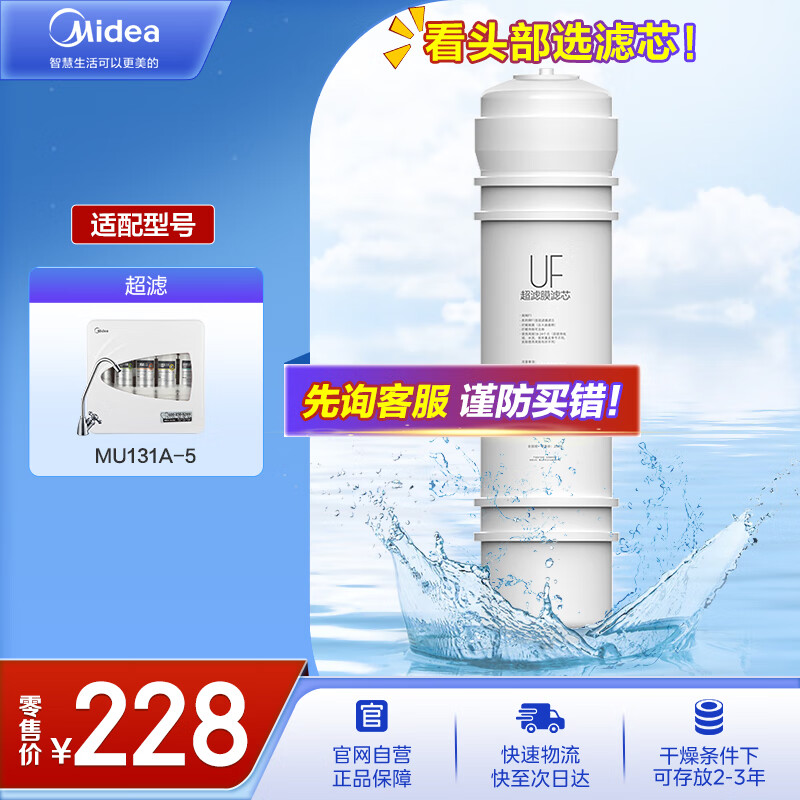 美的净水器滤芯—适用于超滤(MU131A-5)、MU136A-4 净水机通用-M6系列-UF膜芯价格:228.00元!