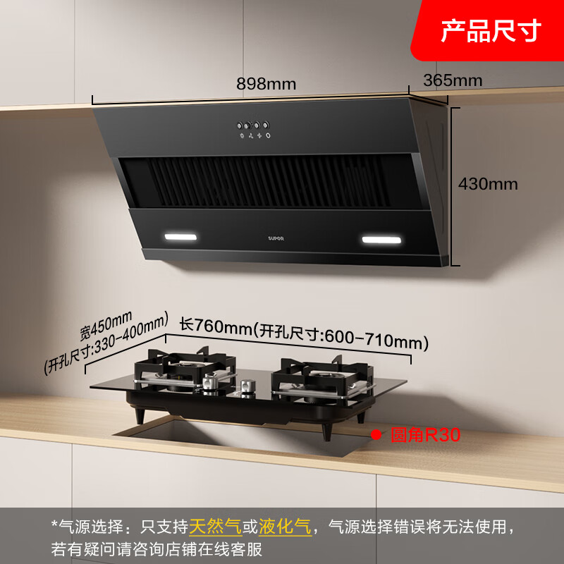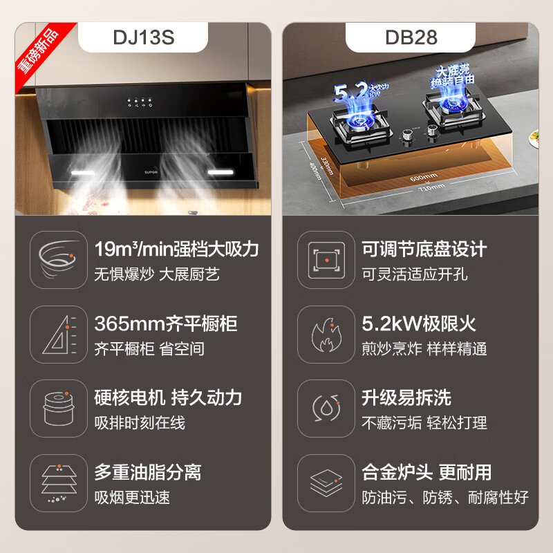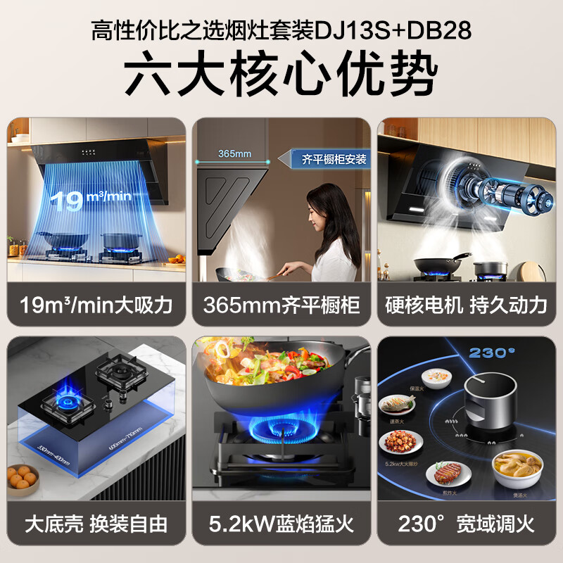 苏泊尔(SUPOR)抽油烟机燃气灶套装 家用小尺寸大吸力 19立方侧吸式小户型烟灶套装DJ13S+DB28天然气价格:1299.00元!