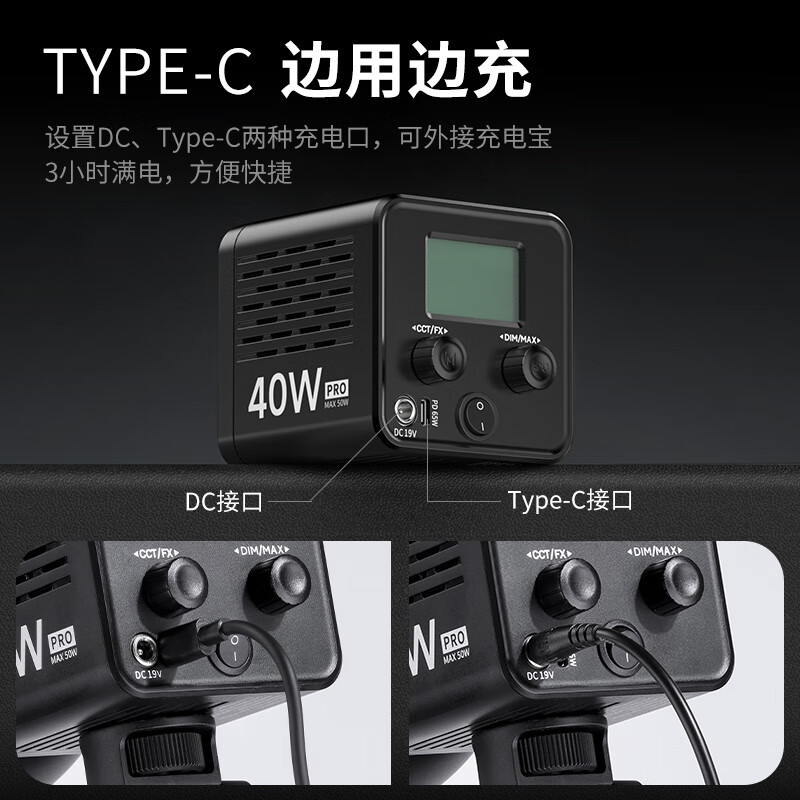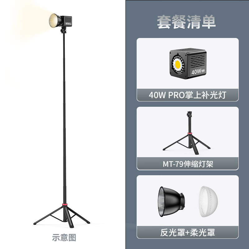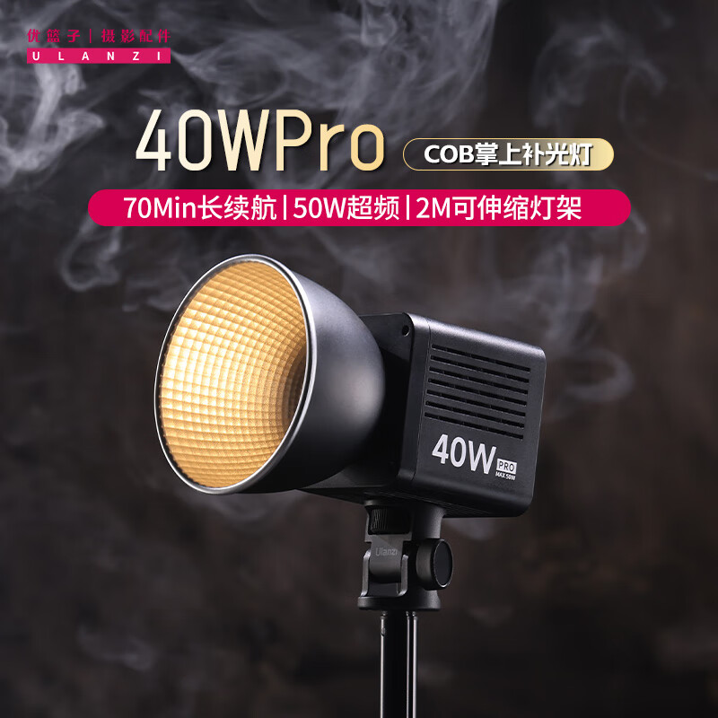 优篮子ulanzi 40WPro补光灯(灯架套装)双色温COB摄影灯户外内置电池直播灯美颜影棚灯(不含适配器)价格:428.00元!