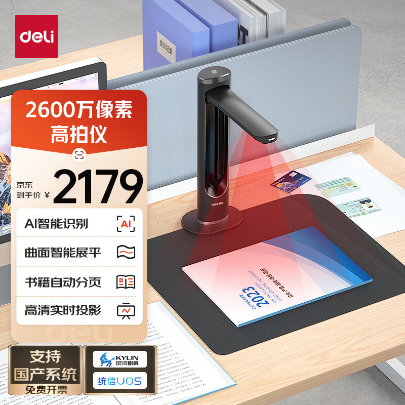 得力扫描仪 2600万像素高拍仪 文件扫描仪连续 视频展台 曲面展平书籍扫描 旗舰版 适配国产系统15165价格:2499.00元!