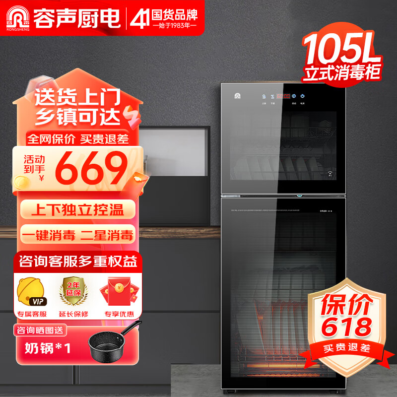 容声(RONGSHENG)消毒柜家用 立式消毒碗柜 商用 餐具茶杯碗筷厨房臭氧消毒柜105L双门大容量138-RQ230(A)价格:649.00元!