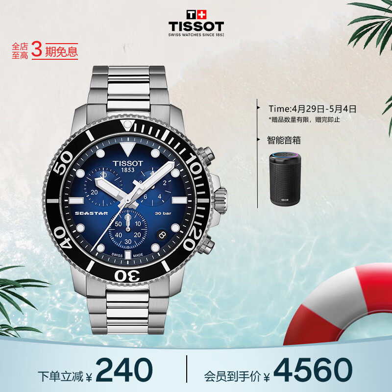 天梭(TISSOT)瑞士手表 海星系列腕表 钢带石英男表 T120.417.11.041.01价格:4800.00元!