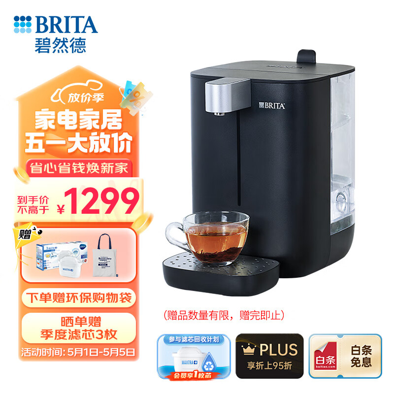 碧然德(BRITA) 台面净饮机即热直饮调温免安装台式净水器 黑色 智能即热饮水机价格:1569.00元!