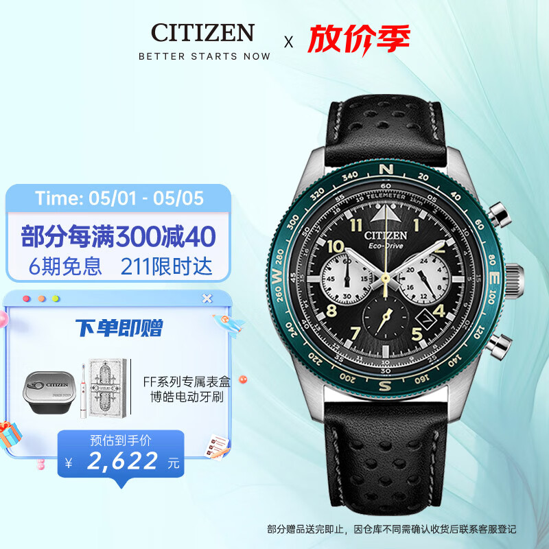 西铁城(CITIZEN)手表男日韩表FF系列光动能黑盘皮带时尚送礼物男友CA4558-16E价格:2822.00元!