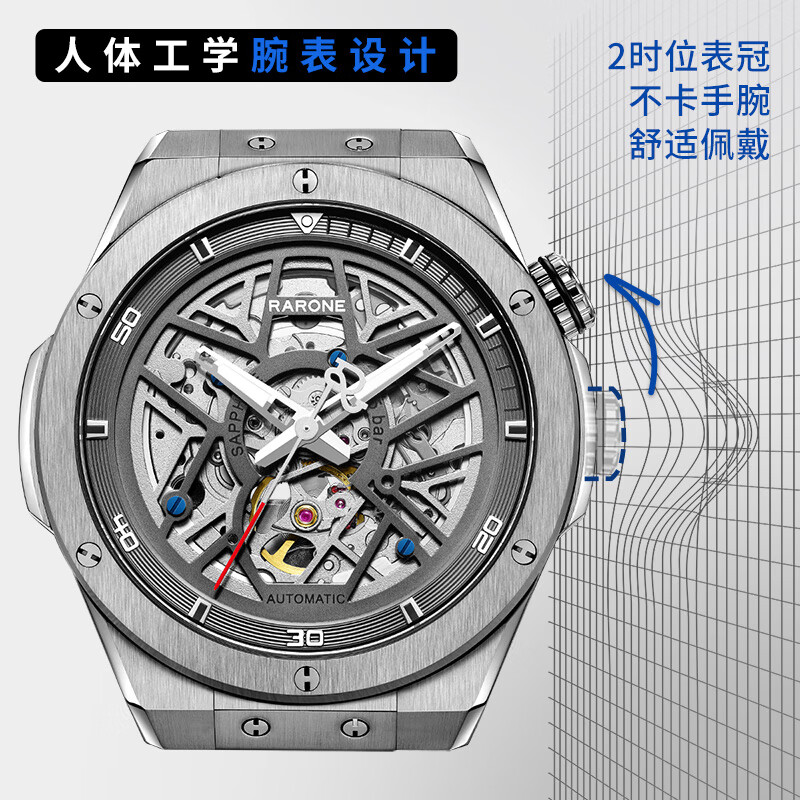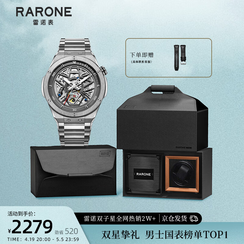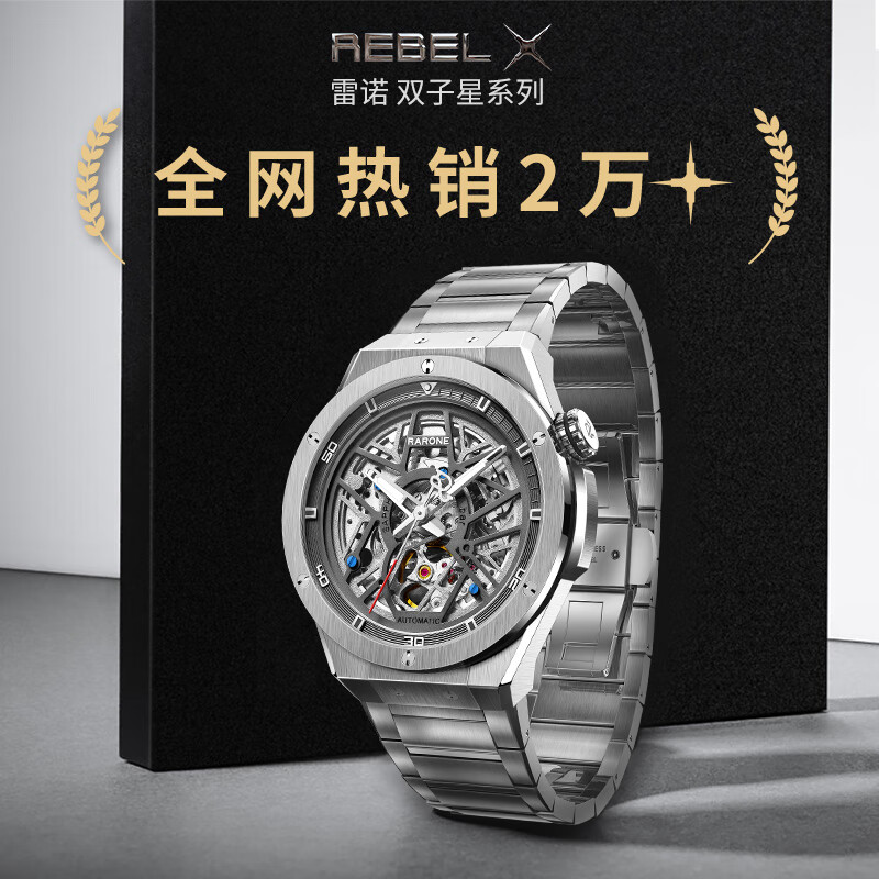 雷诺(RARONE)手表 解构派双子星RebelX男士机械手表钢带礼盒装520情人节礼物价格:2599.00元!