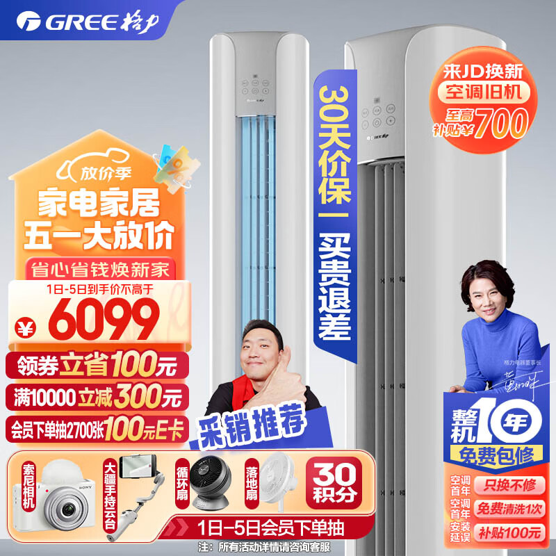 格力(GREE)空调 京东小家智能生态 2匹 云颜 新1级能效 客厅空调立式空调柜机KFR-50LW/NhPa1BAj价格:6099.00元!