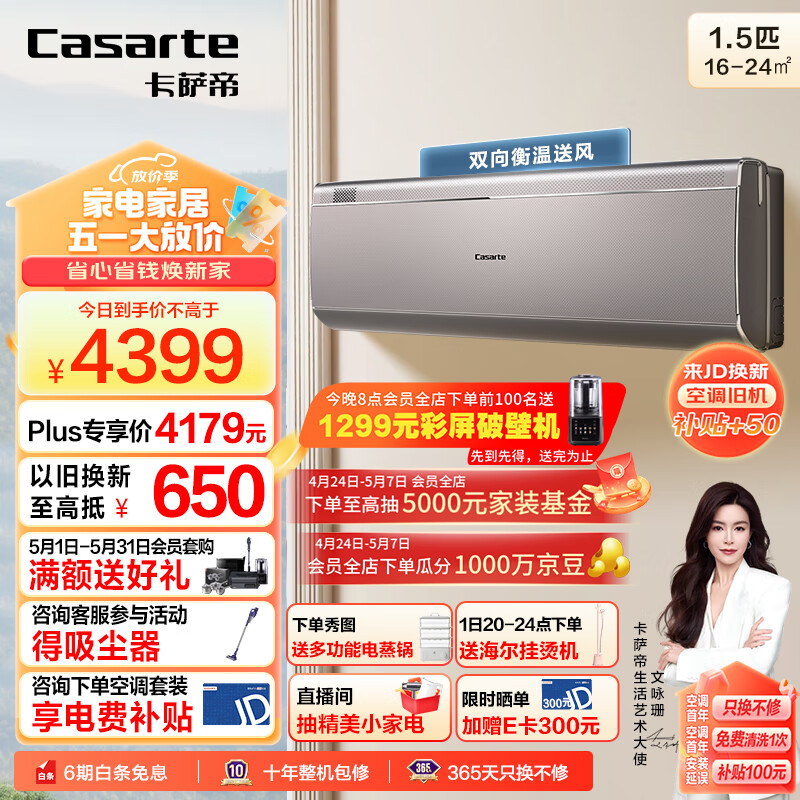 卡萨帝(Casarte) 1.5匹 名匠 双向衡温送风 壁挂式空调挂机 一级能效 智能变频 卧室CAS3512FCA(81)U1价格:4399.00元!