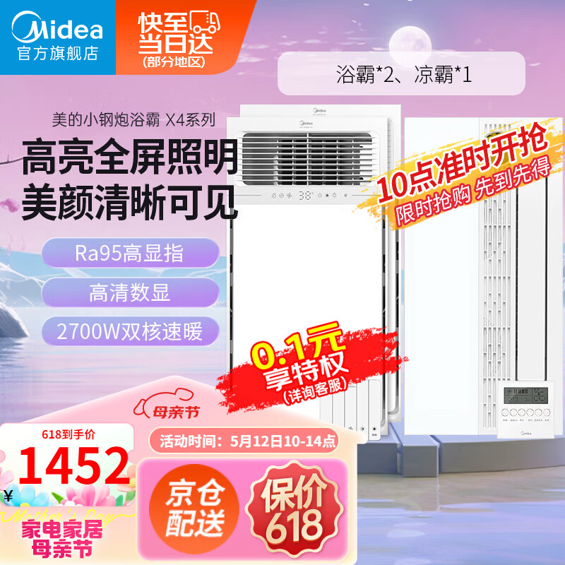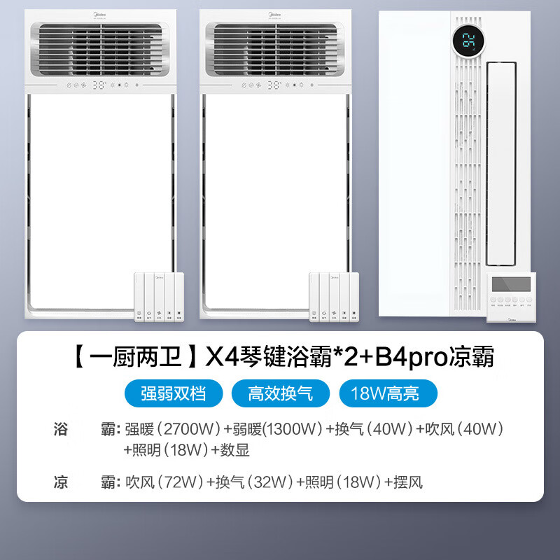 美的(Midea)浴霸双电机数显温控风暖双核卫生间排气扇高显指照明一体机械款价格:1600.00元!