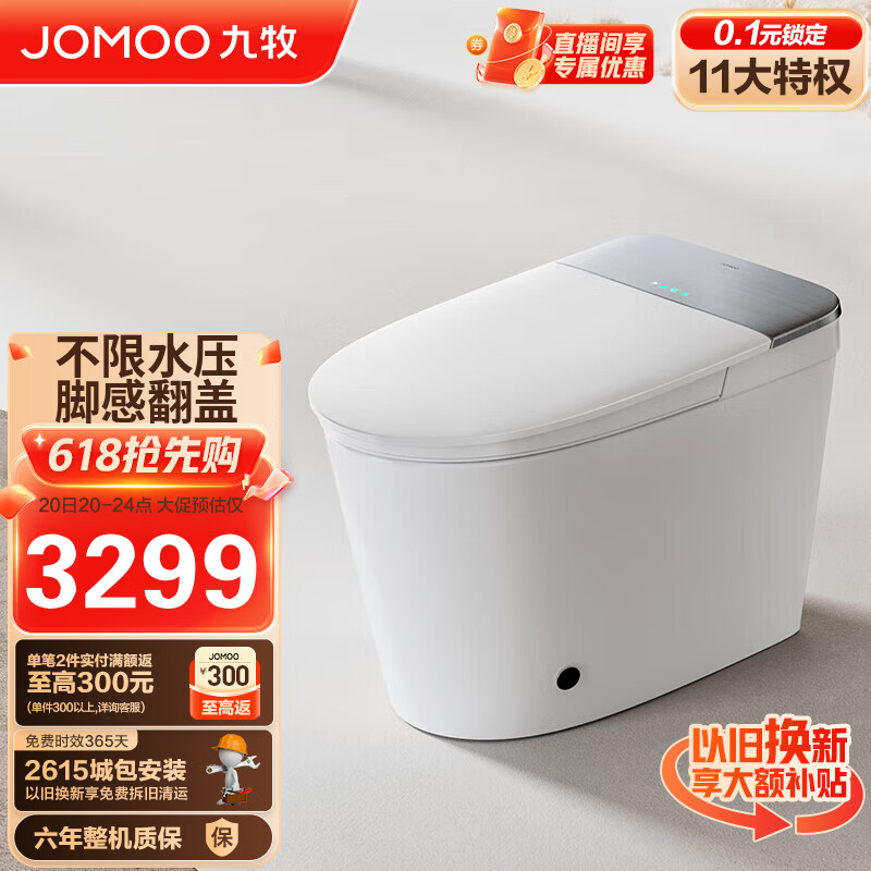 九牧(JOMOO)无水压限制智能马桶一体机节水自动翻盖智能坐便器ZS700I 305坑距价格:4199.00元!