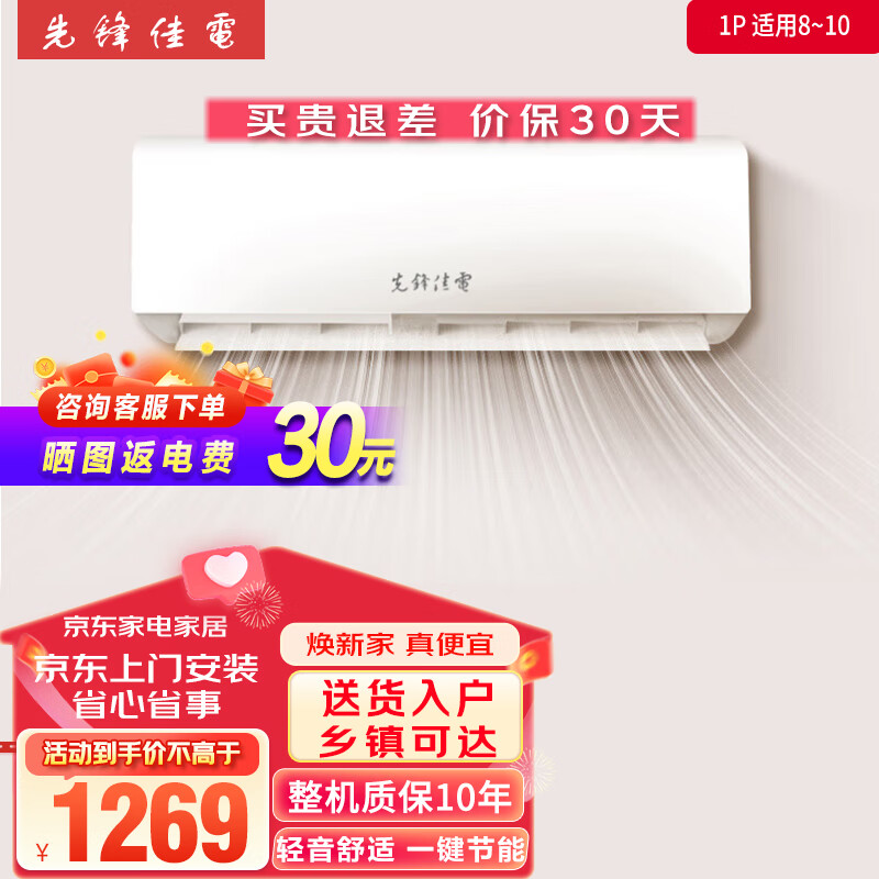 先锋佳电1匹冷暖 新能效 卧室 壁挂式 节能省电 独立除湿 空调挂机 KFRD-25GD/MOA价格:1269.00元!